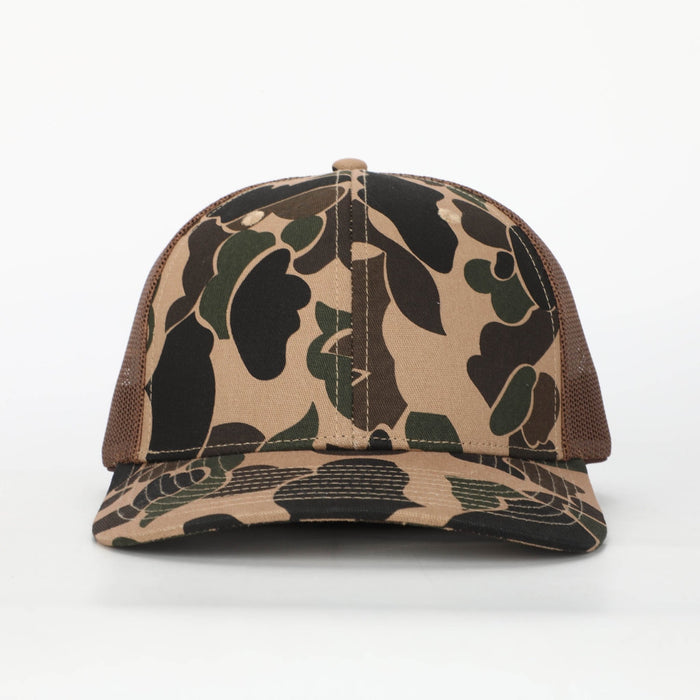 Custom Savannah Moss Co. Duck Camo/Tobacco Trucker hat.