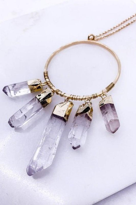 Gold Electroplated Semi Precious Stone Necklace. The necklace's length is 29"+2". The necklace is beautiful and would look amazing on a night in the Historic District.