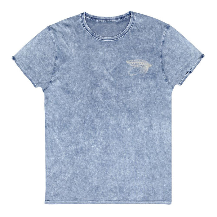 This denim t-shirt is made out of 100% combed cotton and has a classic rounded neckline with ribbed sleeve cuffs. It's soft, comfortable, and a must-have for every fashion enthusiast!