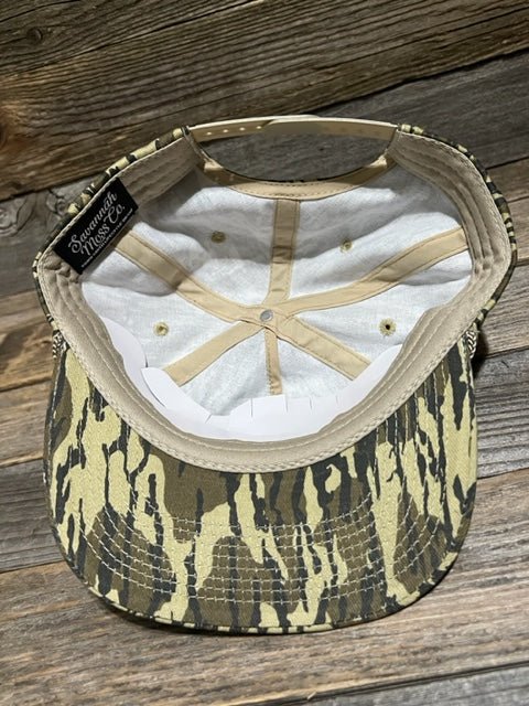 Custom Savannah Moss Co. Hardwoods Camo Rope Snapack Leather Patch Hat.