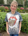 These bleached t-shirts were done by a local t-shirt artist with love. Enjoy the Savannah Weather in style with our custom made bleached animal print tongue graphic t-shirt. Perfect for showing your trendy fashionable self around Bay Street. Graphic Top is Gildan Brand Dry Blend. Available at our local Savannah boutique.