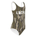 This girls' swimsuit has it all - comfortable fit, elastic fabric, and a deep-colored print that won't fade in the sun and water. The double-layered front, bias binding, and 38–40 UPF ensure that the kids can be their active selves, and the parents don't have to worry about any wardrobe malfunctions.