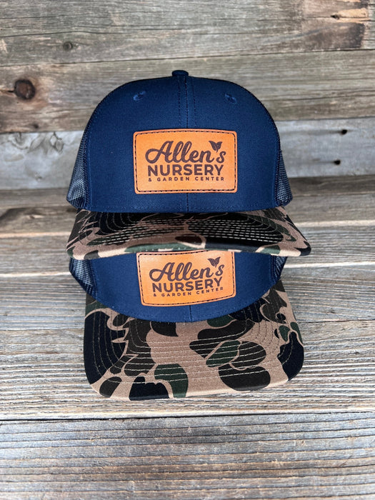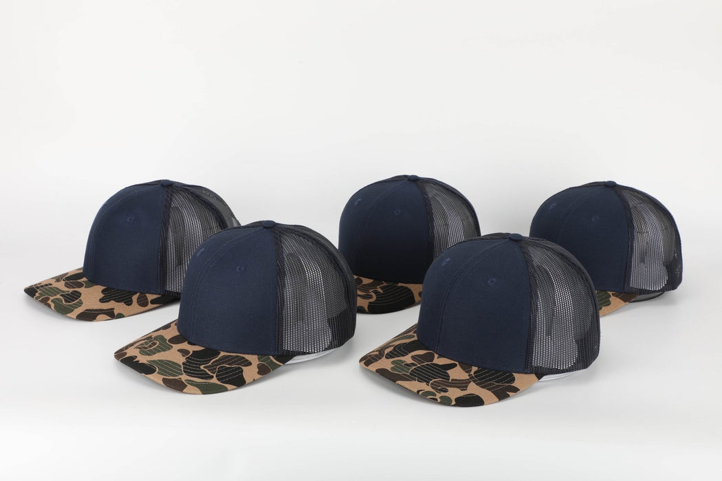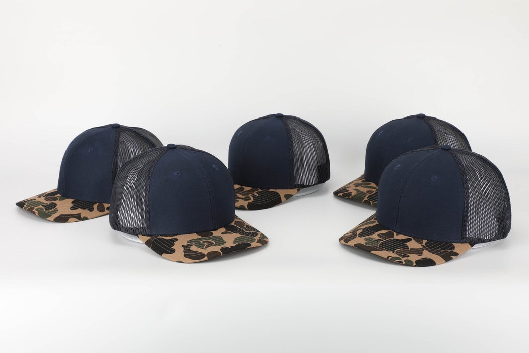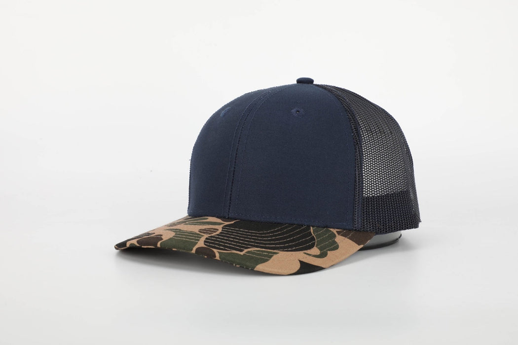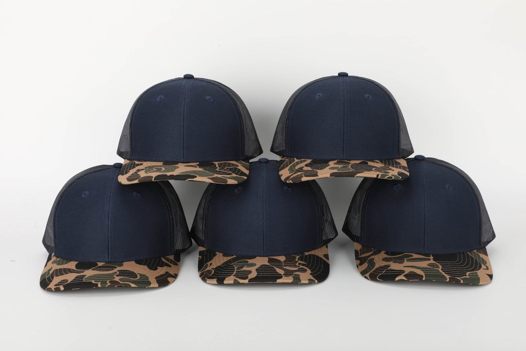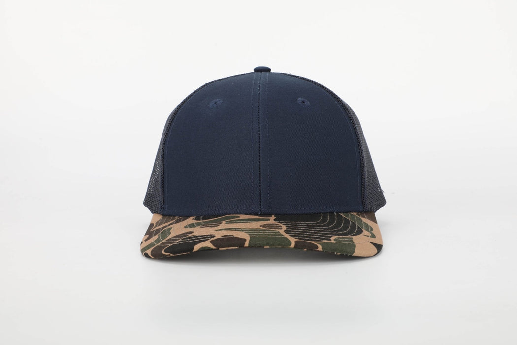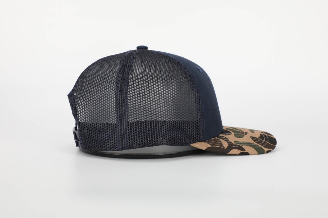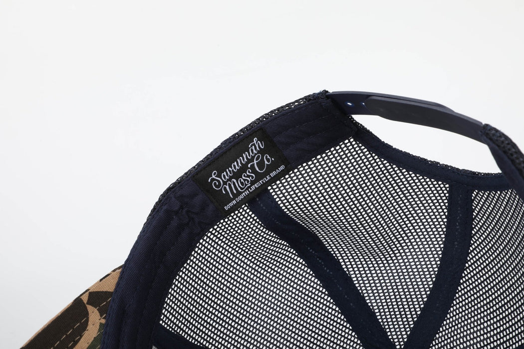 Savannah Moss Co. Navy/Duck Camo Bill Leather Patch Trucker Hat