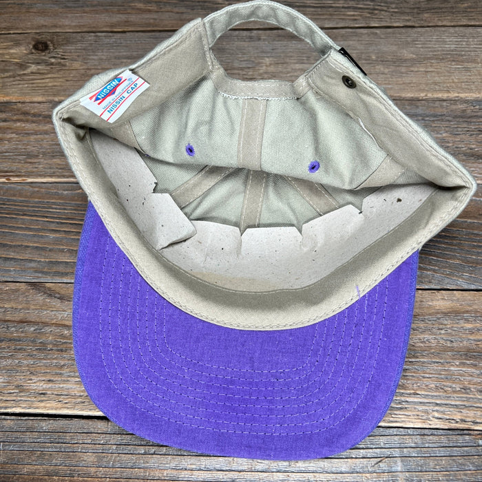 Vintage Custom Deadstock Nissin Khaki/Purple Leather Patch Hat