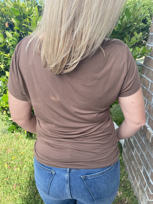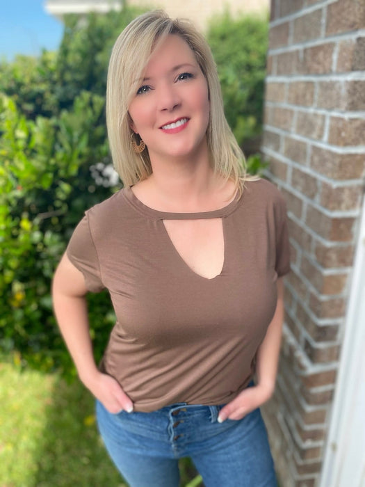 Look super fashionable and trendy in this Darcie Cutout Top. Color: Mocha