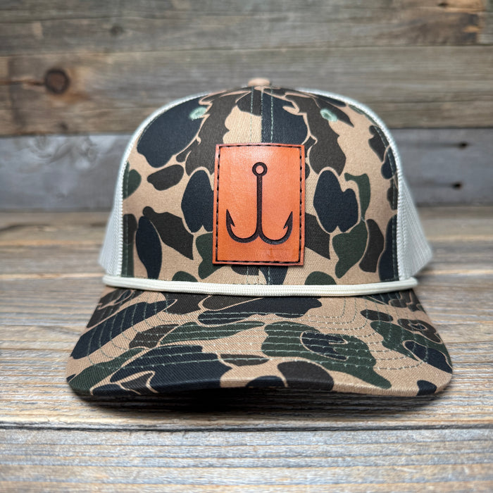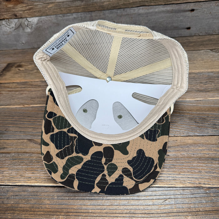 Pictured, Retro Duck Camo Khaki Rope Trucker Hat