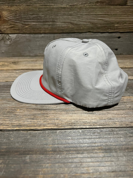 Custom Savannah Moss Co. Light Grey/Red Rope Snapabck Leather Patch Snapback hat.