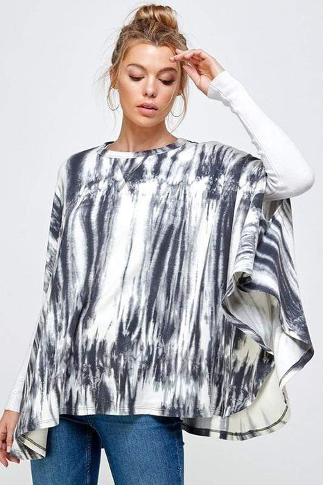 THIS OAKLEY TIEDYE PRINT PONCHO TOP IS SUPER FASHIONABLE, AND JUST THE RIGHT AMOUNT OF FABRIS TO KEEP YOU WARM.